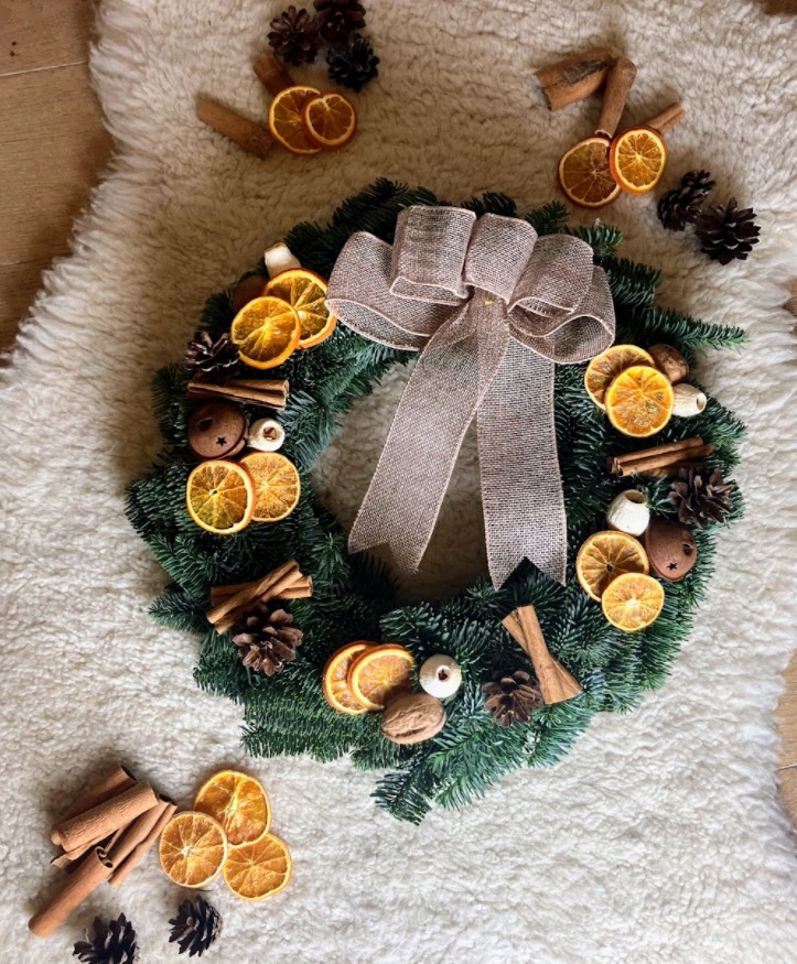 - zimą – klimatyczne wianki bożonarodzeniowe i świąteczne dekoracje,