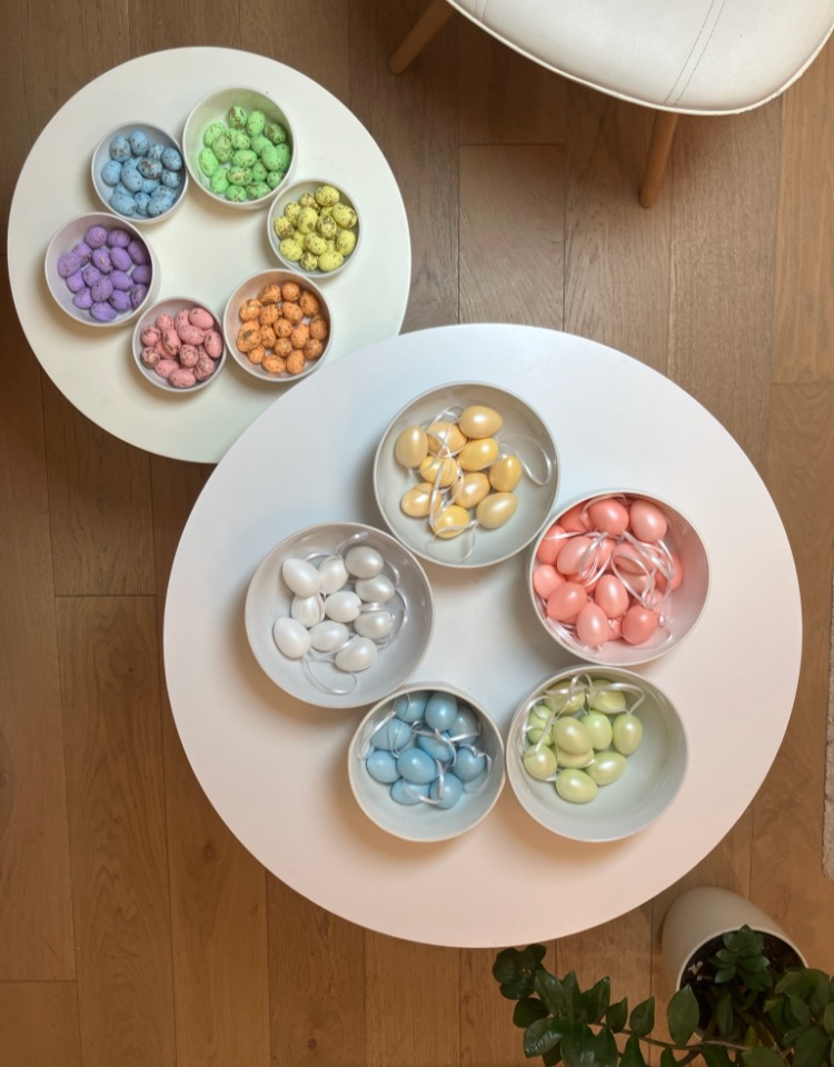 • Bombki i inne sztuczne dekoracje, plastikowe jajeczka wielkanocne, zajączki