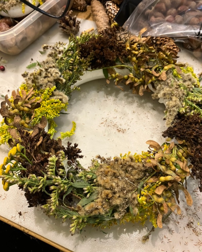 Z czasem możesz eksperymentować z pełnym wiankiem, rozwiązanie to wybieram, gdy używam bazy ze styropianu, słomy czy sklejki tak, aby baza nie była widoczna.