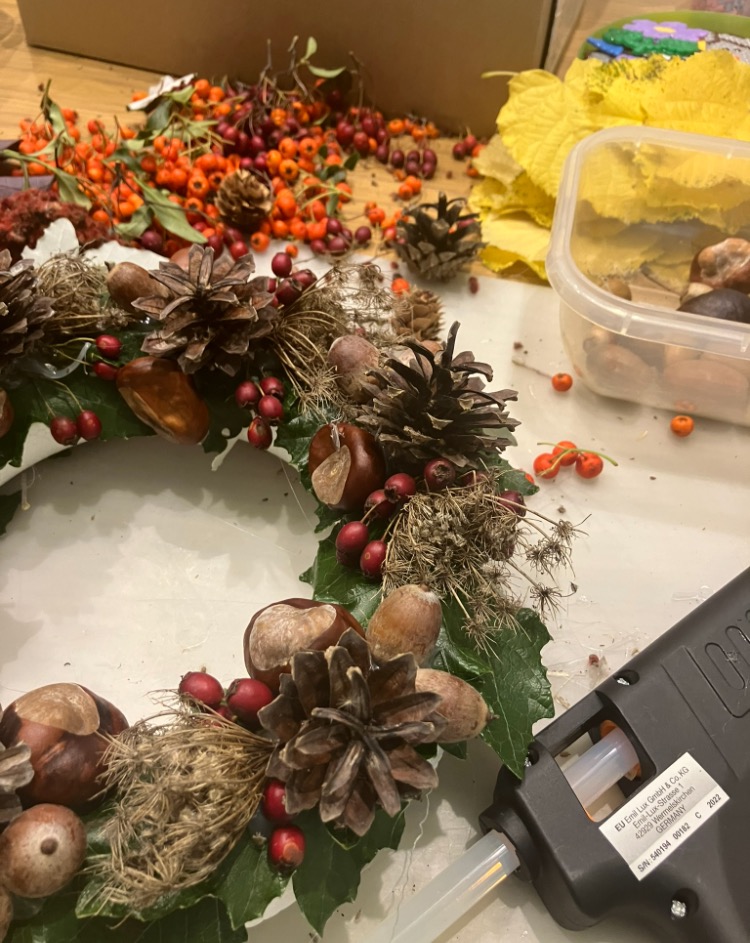 To naprawdę relaksujące zajęcie. Każdy wianek jest inny — i właśnie w tym tkwi jego magia. Użyj własnej kreatywności i wyobraźni albo poszukaj inspiracji w internecie. Przeczytaj mój artykuł, w którym dzielę się 5 pomysłami na jesienne dekoracje, znajdziesz go tutaj.