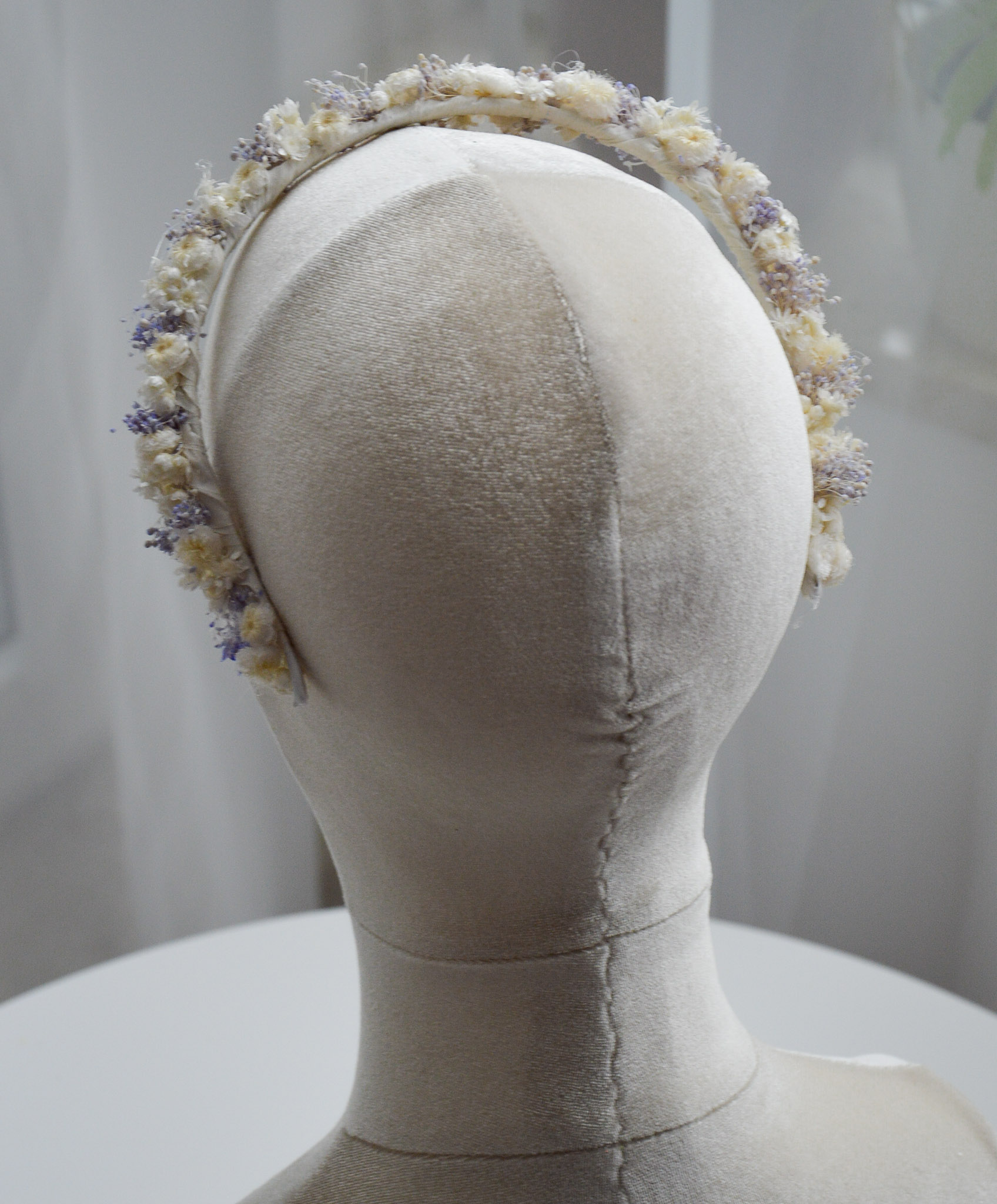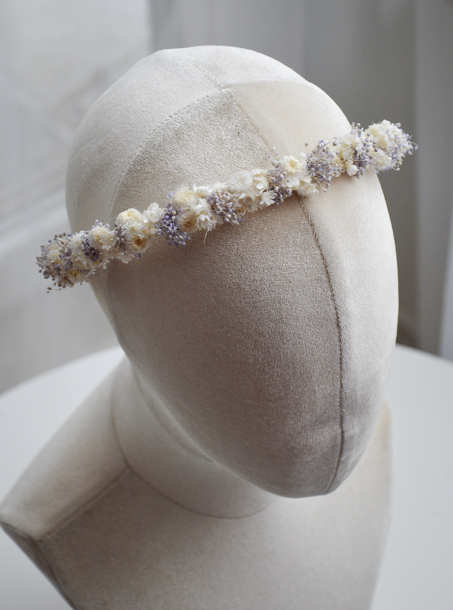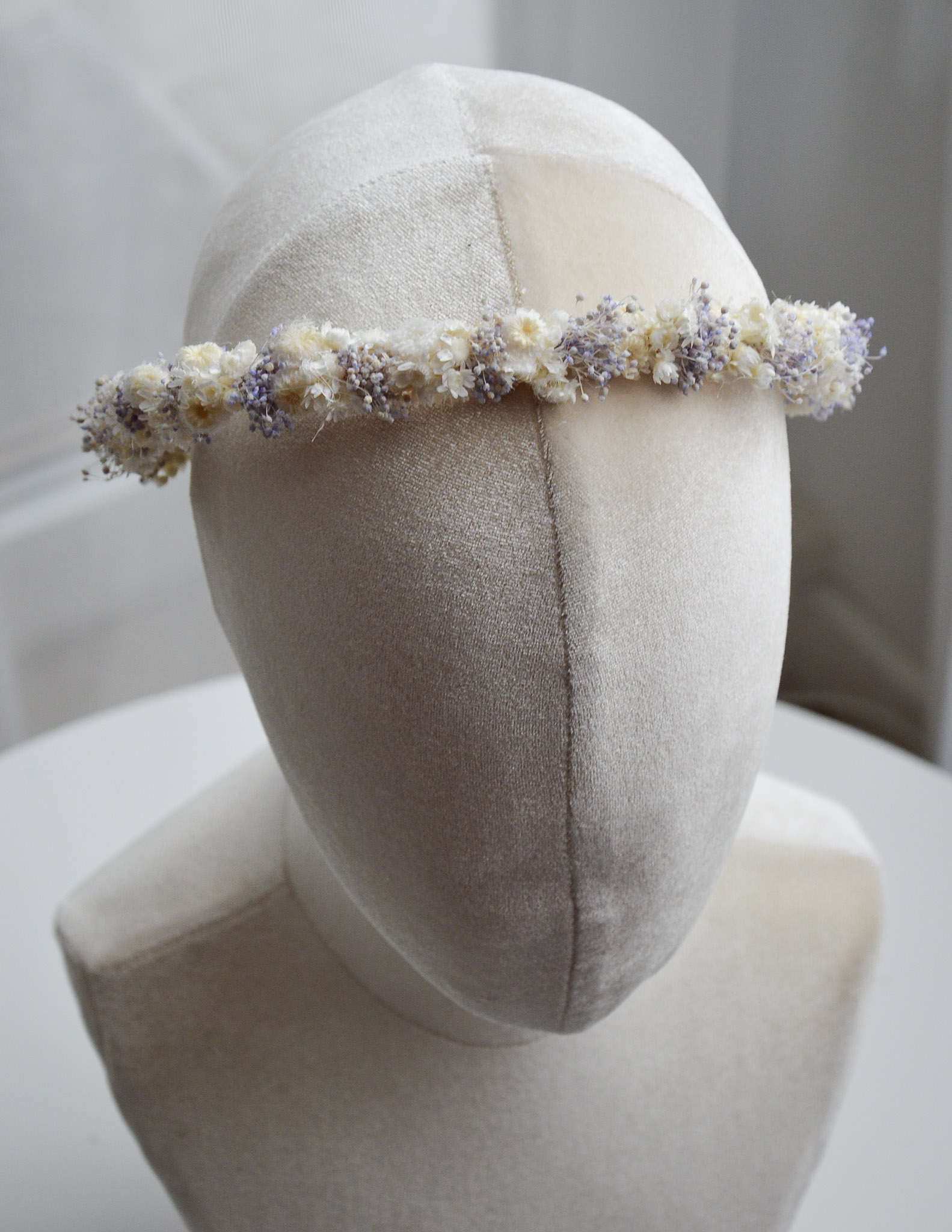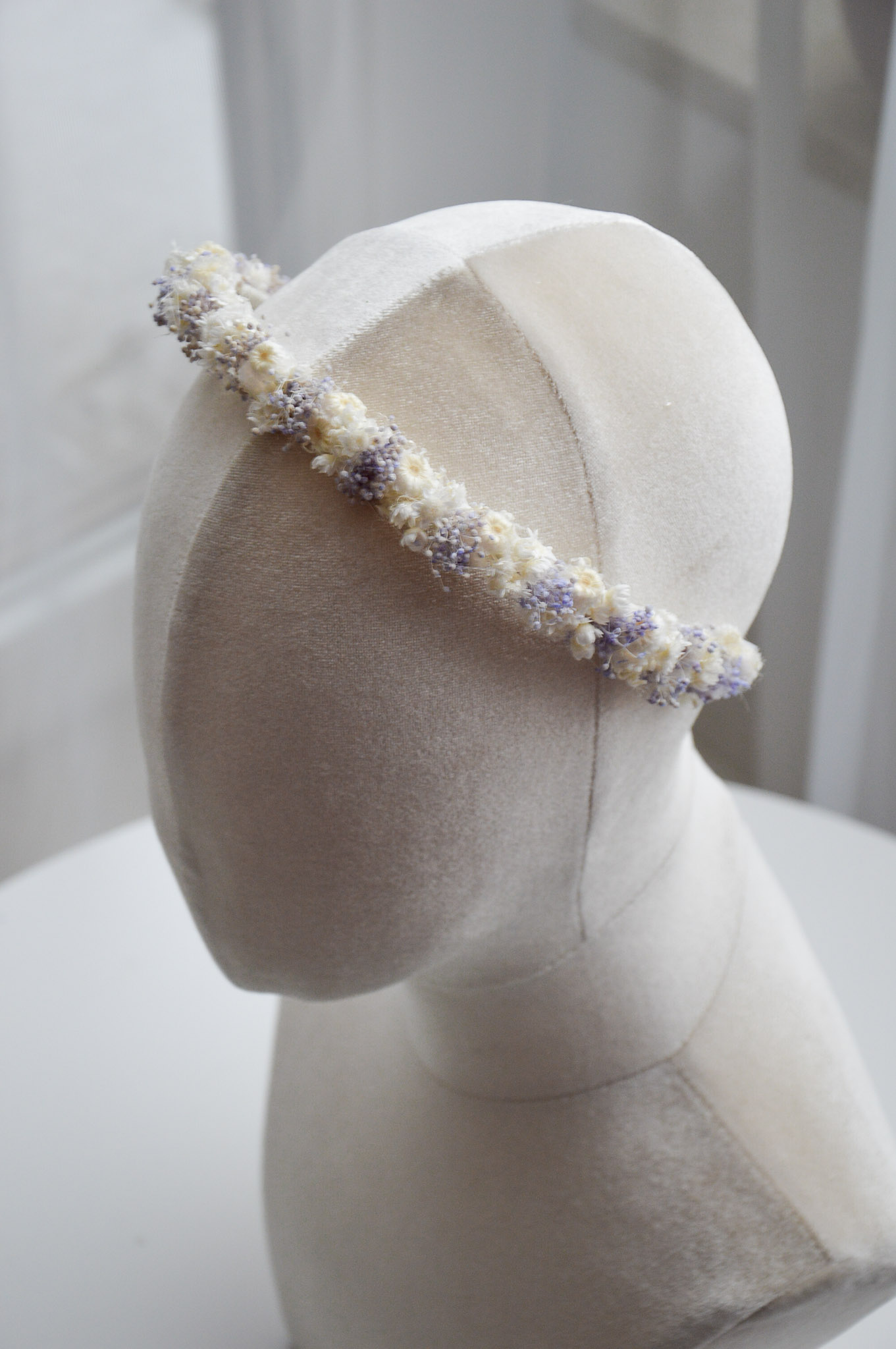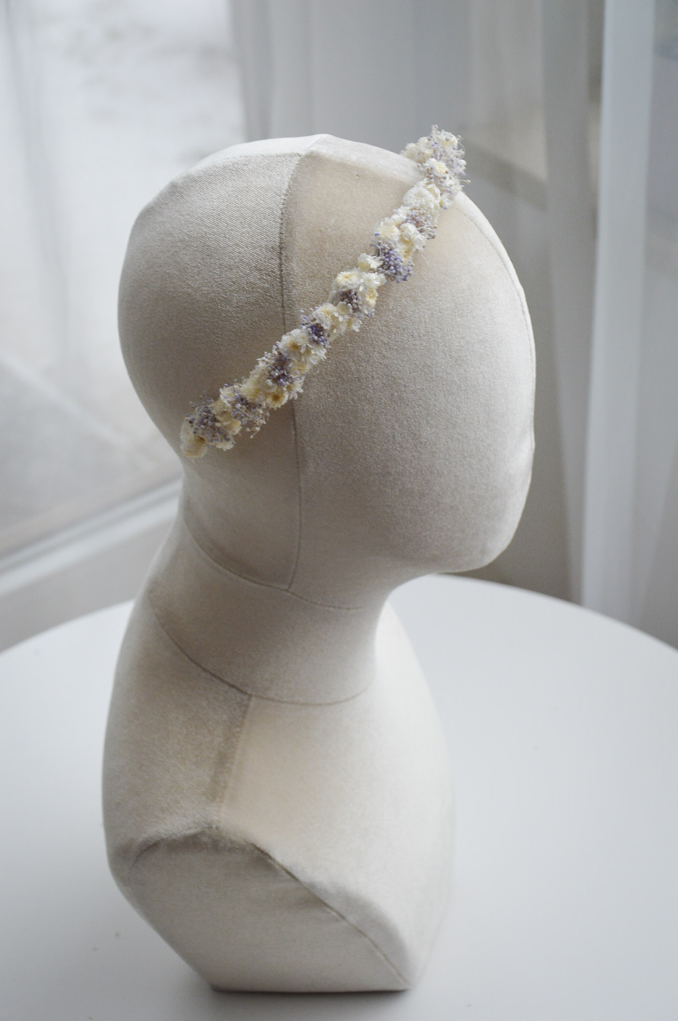 Biało- lawendowa opaska z suszonych kwiatów