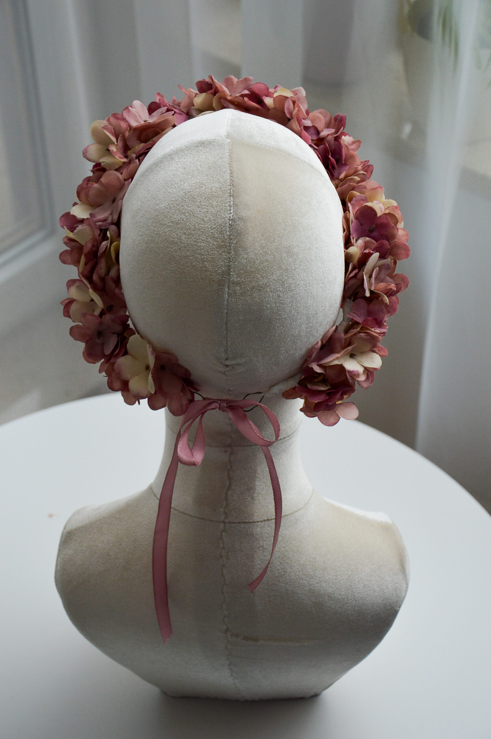 Wianek na głowę z różowej hortensji